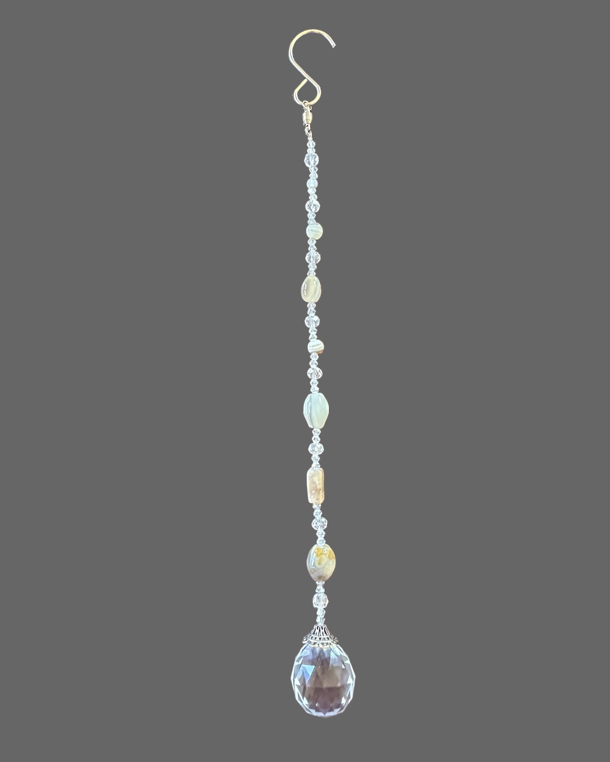 Brighten your home with this stunning agate and clear glass faceted suncatcher!